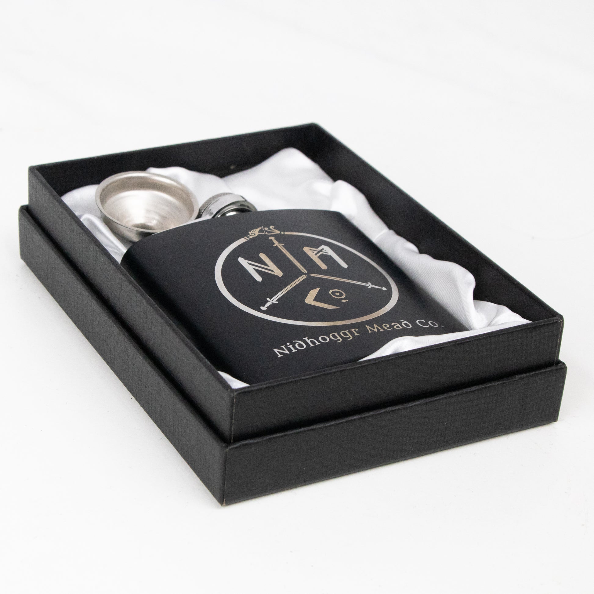 The Pendragon Pack combines all four engraved tiles with the matching engraved flask for a bold statement set.